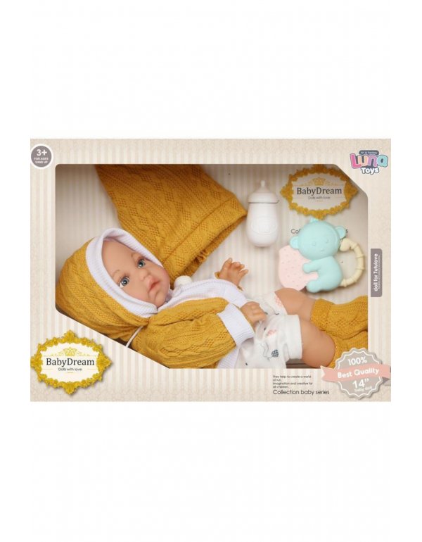LUNA ΚΟΥΚΛΑ ΜΩΡΟ ΜΕ ΑΞΕΣΟΥΑΡ ΣΕ ΚΙΤΡΙΝΕΣ ΑΠΟΧΡΩΣΕΙΣ 35cm