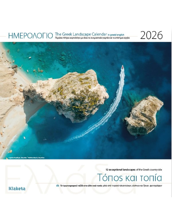 Κυκλοφόρησε το -κλασικό πια- ημερολόγιο τοίχου της “Klaketa”, με 12 μοναδικές φωτογραφίες από ισάριθμους τόπους και τοπία της Ελλάδας, ιδωμένα μέσα από τον φακό ταλαντούχων Ελλήνων και ξένων φωτογράφων. Θα το βρείτε σε όλα τα βιβλιοπωλεία και στα ηλεκτρονικά τους καταστήματα. Περισσότερες πληροφορίες σχετικά με τα συνεργαζόμενα με την Klaketa e-shops, ακολουθούν πιο κάτω.