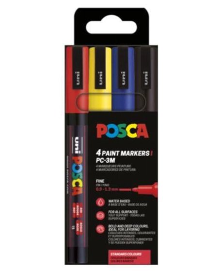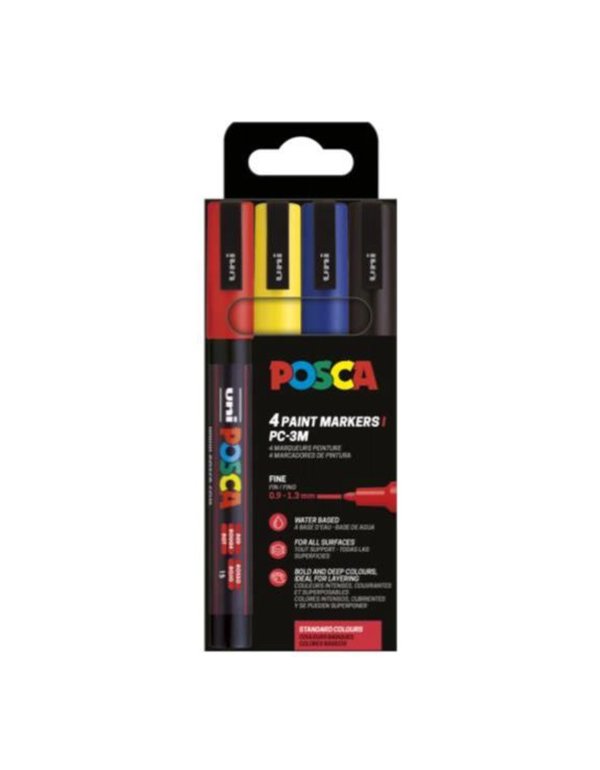 ΜΑΡΚΑΔΟΡΟΙ UNI POSCA PC-3M MEDIUM ΣΕΤ 4 BASIC