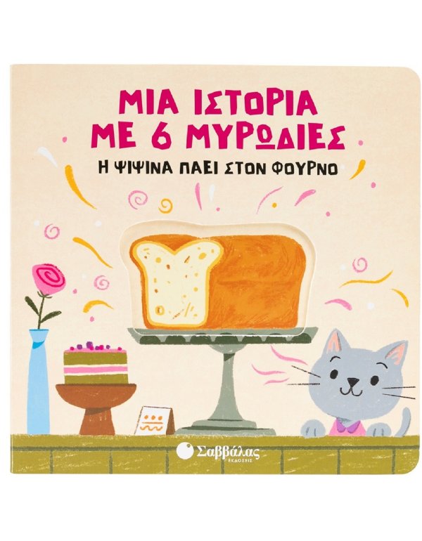 Σήμερα είναι τα γενέθλια της ψιψίνας και θα κάνει πάρτι για όλους τους φίλους της! Έχει βγει για ψώνια και η τελευταία της στάση είναι στον φούρνο. Τι να αγοράσει όμως; Όλα μυρίζουν τόσο ωραία! Άνοιξε το κάθε παραθυράκι και τρίψε την εικόνα για να ανακαλύψεις όλες τις υπέροχες μυρωδιές που αρέσουν τόσο στην ψιψίνα!