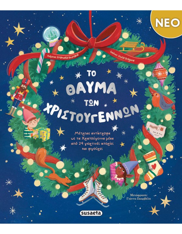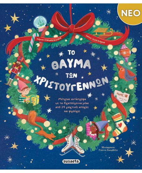 Όλη η μαγεία και το θαύμα των Χριστουγέννων σε ένα γιορτινό πακέτο! Το κουτί περιέχει ένα εικονογραφημένο βιβλίο με 24 χαρούμενες ιστορίες, που θα ενθουσιάσουν τα παιδιά. Ξεκινώντας από την 1η Δεκεμβρίου, και αφού διαβάσουν μία ιστορία τη μέρα, θα φτάσουν ως την Παραμονή των Χριστουγέννων μέσα από μια πρωτότυπη αφηγηματική αντίστροφη μέτρηση. Στο χωριό του Άγιου Βασίλη θα γνωρίσουν τα ξωτικά, τους πολύτιμους βοηθούς του, και μαζί τους θα επισκεφθούν το εργοστάσιο παιχνιδιών, το ζαχαροπλαστείο, το νηπιαγωγείο, ενώ θα ζήσουν και πολλές πολλές περιπέτειες! Το κουτί περιέχει επίσης 24 χριστουγεννιάτικες φιγούρες από σκληρό χαρτόνι, εμπνευσμένες από τις ιστορίες του βιβλίου, για ατέλειωτο παιχνίδι!
