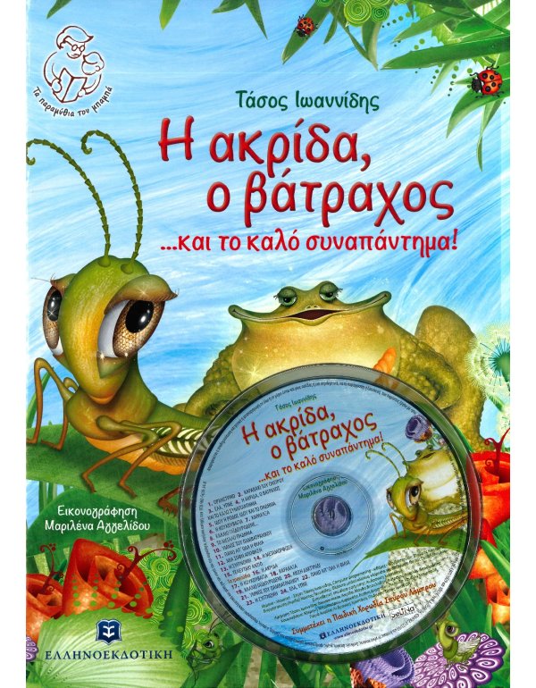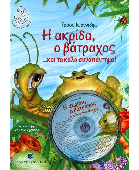 Η ακρίδα, ο βάτραχος και το καλό συναπάντημα» είναι ένα μουσικό παραμύθι γεμάτο χιουμοριστικές ανατροπές, με ιδιόμορφους χαρακτήρες που ζουν σε ένα μαγικό λιβάδι. Ένας επίμονος Βάτραχος, με περισσή αυταρέσκεια, προσπαθεί να πείσει μια ταπεινή Ακρίδα να τον ανταγωνιστεί στο πήδημα. Η άρνησή της κάνει τον Βάτραχο ακόμη πιο επίμονο. Οι αντικρουόμενες συμβουλές των πλασμάτων που... συναπαντιούνται στο λιβάδι, της κουκουβάγιας, της καρακάξας και του γαϊδάρου, θα προβληματίσουν την Ακρίδα. Μετά από πολλή περίσκεψη η Ακρίδα θα πάρει μια ...απρόσμενη απόφαση και θα στείλει τον Βάτραχο ...από ’κει που ήρθε! Από τον δημιουργό των τραγουδιών Λάχαχα και Χάχανα και της ομώνυμης μουσικοθεατρικής παράστασης