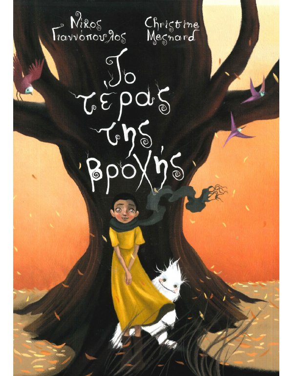 Μέχρι που µια µέρα κάτι ακούστηκε από την κορυφή του πλάτανου! Ήταν το τροµερό τέρας της βροχής! Το φοβερό πλάσµα από τις ιστορίες και τα παραµύθια των συγχωριανών της! Τελικά υπήρχε στ' αλήθεια! Μα, για περίµενε... Δεν ήταν µεγάλο σαν βράχος, αλλά µικρό και χνουδωτό. Δε γρύλιζε µε βροντερή φωνή, µα µιλούσε κανονικά. Δεν ήταν θυµωµένο και άγριο... Έµοιαζε όµως θλιµµένο, γιατί, όπως και η Μελίνα, ήταν κι αυτό µόνο.