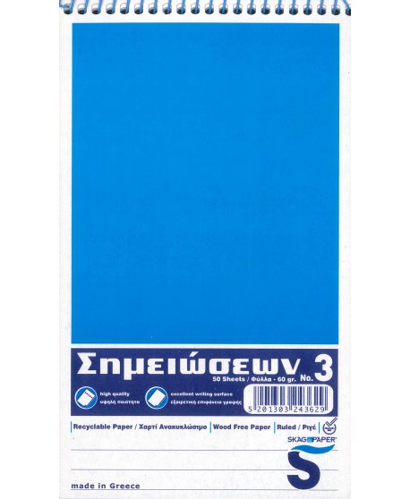 ΜΠΛΟΚΑΚΙ ΣΗΜΕΙΩΣΕΩΝ SKAG ΡΙΓΕ ΜΕ ΣΠΙΡΑΛ No3