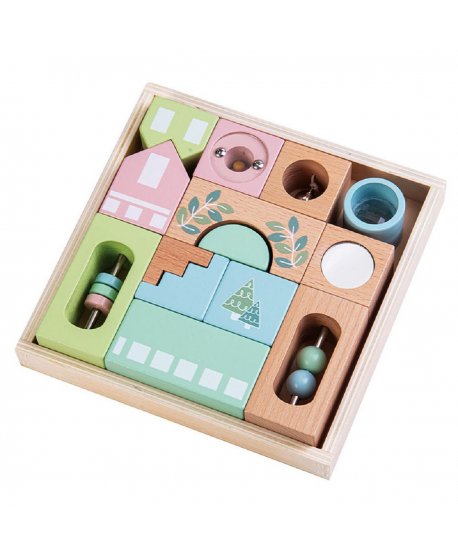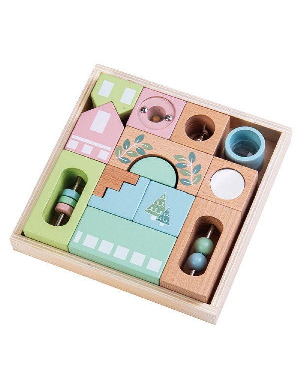 Εκπαιδευτικό παιχνίδι που αποτελείται από 15 τεμάχια και συνδυάζει την αφή, την όραση και την ακοή. Τα τουβλάκια περιέχουν μικρά αντικείμενα (μπαλάκια, κουδουνάκια, κλπ) στο εσωτερικό τους, τα οποία παράγουν διαφορετικούς ήχους όταν τα κουνάμε. Βοηθούν στην ανάπτυξη των αισθήσεων, της λεπτής κινητικότητας και της ακουστικής αντίληψης των παιδιών. Είναι κατασκευασμένα από φυσικό ξύλο υψηλής ποιότητας, ενώ είναι βαμμένα με ασφαλή, 100% μη τοξικά χρώματα.