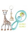 – Μια Sophie la girafe μπρελόκ από 100% φυσικό καουτσούκ ώστε και μια μαμά να μπορεί να έχει ένα ομοίωμα της Σόφι μαζί της.
