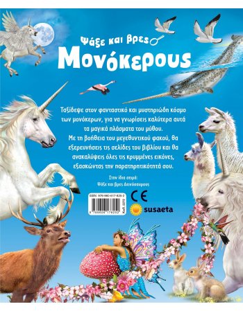 Ταξίδεψε στον φανταστικό και μυστηριώδη κόσμο των μονόκερων, για να γνωρίσεις καλύτερα αυτά τα μαγικά πλάσματα του μύθου. Με τη βοήθεια του μεγεθυντικού φακού, θα εξερευνήσεις τις σελίδες του βιβλίου και θα ανακαλύψεις όλες τις κρυμμένες εικόνες, εξασκώντας την παρατηρητικότητά σου.