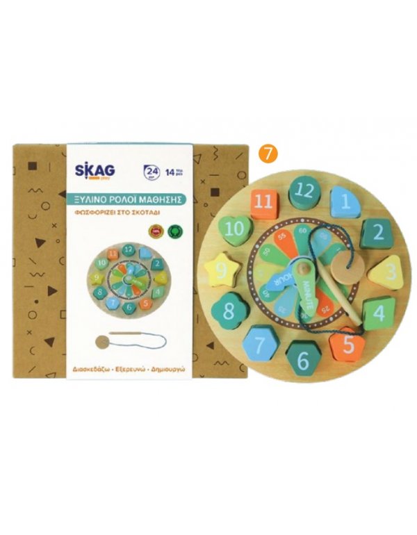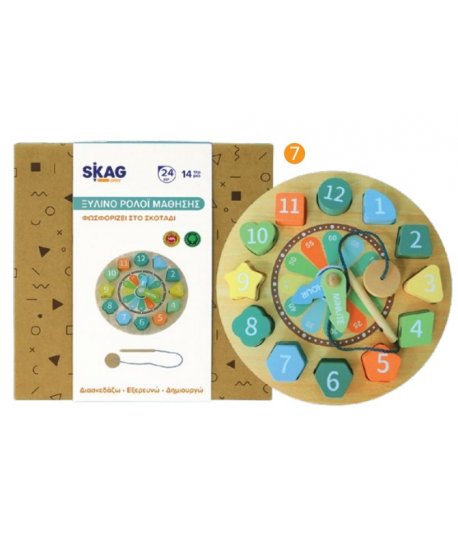 SKAG ξύλινο ρολόι μάθησης, ένα παιχνίδι που θα συναρπάσει το παιδί, καθώς θα μάθει να ταιριάζει τα διάφορα σχήματα