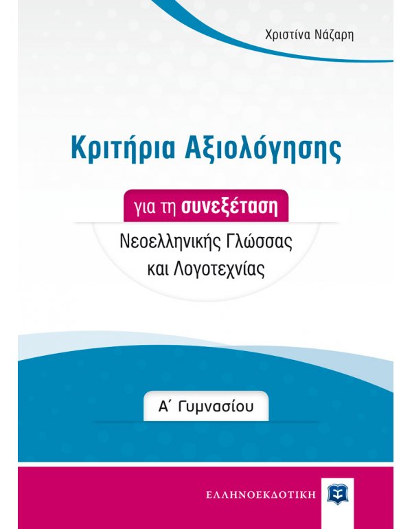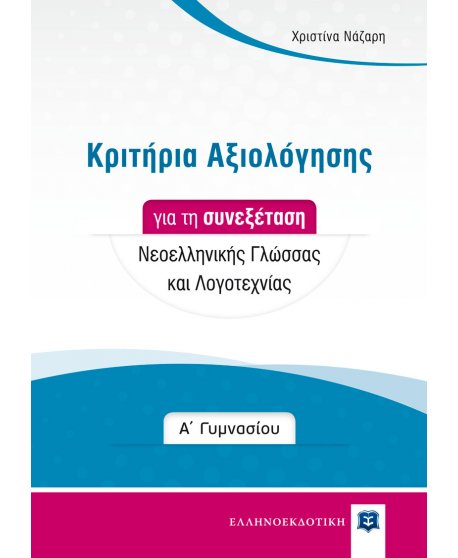 Το βιβλίο Κριτήρια Αξιολόγησης για τη συνεξέταση Νεοελληνικής Γλώσσας και Λογοτεχνίας στη Α΄ Γυμνασίου αποτελεί αναγκαίο συμπλήρωμα της έκδοσης Εκθέσεις για τη Α΄ Γυμνασίου.