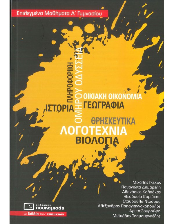 Λογοτεχνία, Ιστορία, Ομήρου Οδύσσεια, Γεωγραφία, Βιολογία, Οικιακή Οικονομία, Θρησκευτικά, Πληροφορική είναι τα μαθήματα της Α' Γυμνασίου τα οποία καλύπτει η έκδοση αυτού του βιβλίου. Σκοπός μας είναι να βοηθήσουμε τον μαθητή να ξεδιαλύνει τους βασικούς όρους των μαθημάτων, να διευκολυνθεί στην ταξινόμηση της ύλης και να κατανοήσει πληρέστερα τα πιο δυσνόητα σημεία της θεωρίας.