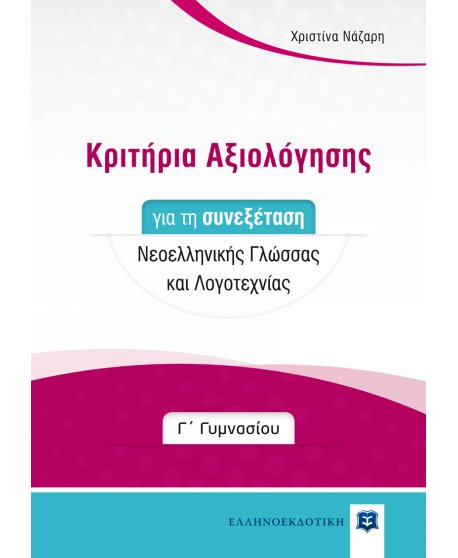 Το βιβλίο Κριτήρια Αξιολόγησης για τη συνεξέταση Νεοελληνικής Γλώσσας και Λογοτεχνίας στη Γ΄ Γυμνασίου αποτελεί αναγκαίο συμπλήρωμα της έκδοσης Εκθέσεις για τη Γ΄ Γυμνασίου.