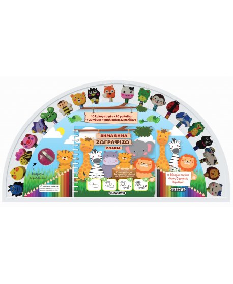 Ένα μοναδικό σετ ζωγραφικής για να μάθεις να σχεδιάζεις τα πιο όμορφα ζώα σε 4 μόνο βήματα! Διάβασε τις απλές οδηγίες, πάρε τις ξυλομπογιές και τα μολύβια της συσκευασίας και φτιάξε τα αγαπημένα σου ζωάκια!