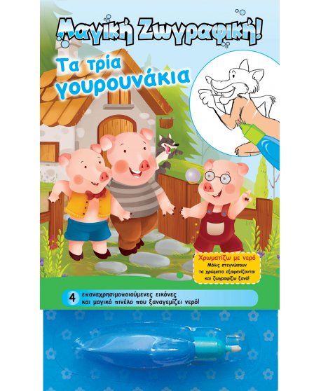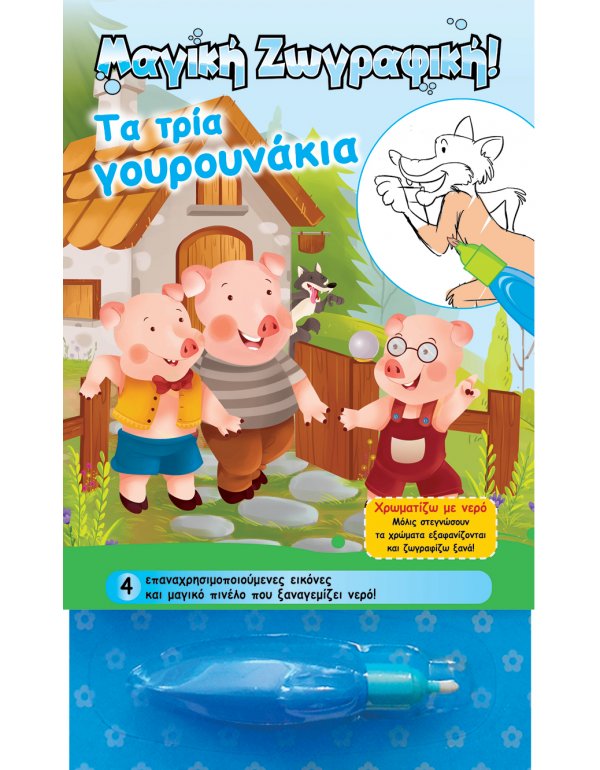 Εξάσκησε τις ικανότητες και τις δεξιότητές σου με την πρωτοποριακή εκπαιδευτική πρακτική. Χρωματιστές παραστάσεις που αποκαλύπτονται με τη χρήση του μαγικού πινέλου. Οι συναρπαστικές ιστορίες που παρουσιάζονται σε κάθε σελίδα ενδυναμώνουν την αντιληπτικότητα των παιδιών ενώ, ταυτόχρονα, αυτά διασκεδάζουν ζωγραφίζοντας! 4 επαναχρησιμοποιούμενες εικόνες και μαγικό πινέλο που ξαναγεμίζει νερό!