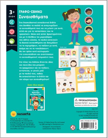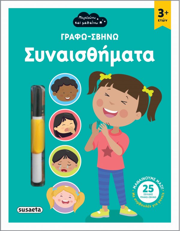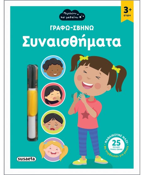 Ένα διασκεδαστικό εκπαιδευτικό βιβλίο που βοηθάει τα παιδιά να αναγνωρίζουν τα συναισθήματά τους και να μιλούν για αυτά, αλλά και για τις καταστάσεις που τα προκαλούν. Μέσα από απλές δραστηριότητες και με τη βοήθεια του μαρκαδόρου που σβήνει εύκολα, τα παιδιά κατανοούν τα βασικά συναισθήματα και δοκιμάζουν να τα περιγράψουν, να παίξουν με αυτά, ακόμα και να τα «σχεδιάσουν». Με τον τρόπο αυτό καλλιεργούν την ενσυναίσθηση και αναπτύσσουν τη συναισθηματική νοημοσύνη τους.