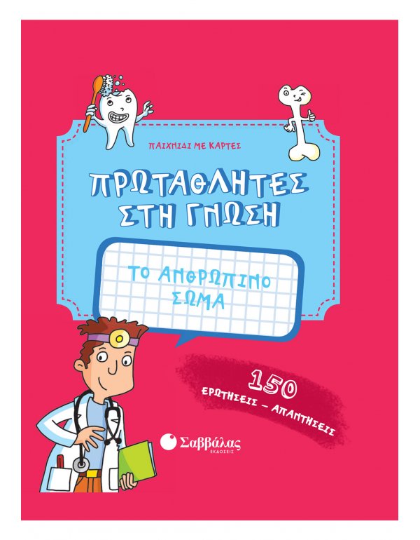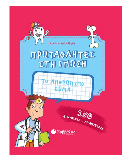 Μάθε τα πάντα για το ανθρώπινο σώμα και γίνε πρωταθλητής στη γνώση! Το κουτί περιλαμβάνει 50 κάρτες με 150 διασκεδαστικές ερωτήσεις , διαβαθμισμένες σε 3 επίπεδα δυσκολίας. Επιπλέον, σε κάθε κάρτα θα βρεις πρωτότυπες πληροφορίες για το ανθρώπινο σώμα!