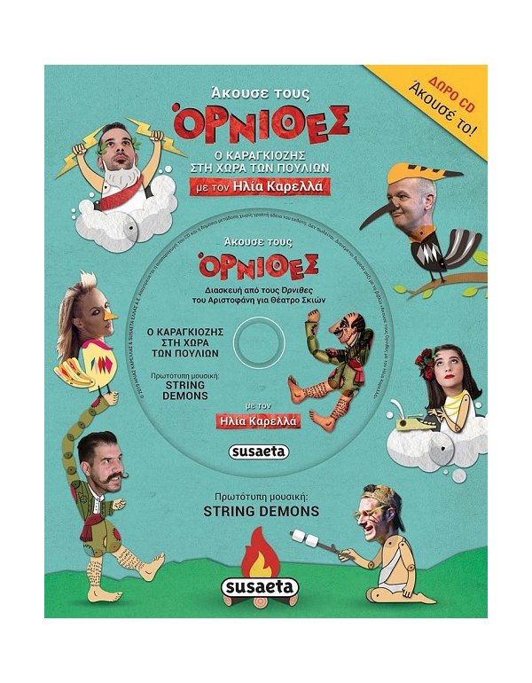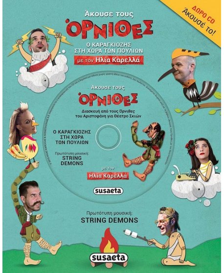 Ο λαϊκός φιλόσοφος Καραγκιόζης συναντά την αρχαία κωμωδία και τον Αριστοφάνη σε ένα πολύχρωμο λυρικό παραμύθι. Σε αυτή τη διασκευή, Καραγκιόζης και μπαρμπα-Γιώργος, απογοητευμένοι από την πόλη τους, αναζητούν τον ιδανικό τόπο για να ζήσουν. Αφήνουν πίσω τους τις θεόρατες πολυκατοικίες, τα αυτοκίνητα, τον θόρυβο και τη μιζέρια της πόλης και των ανθρώπων της, και ξεχύνονται στο δάσος. Εκεί θα γνωρίσουν τα πουλιά και τον αρχηγό τους, και θα ξεκινήσει μια απίστευτη περιπέτεια…
