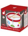 Τα παιδιά αγαπάνε τη μουσική και τον ήχο που παράγουν τα μουσικά όργανα. Τι καλύτερο λοιπόν από αυτό το ξύλινο τύμπανο με δέρμα στην εσωτερική επιφάνεια για να παίζουν και να ακούν έναν πραγματικό ήχο τύμπανου.