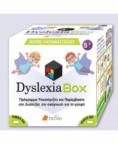 Το Dyslexia Box περιλαμβάνει 238 κάρτες, 5 πιόνια, 1 βοηθό ανάγνωσης και εγχειρίδιο 48 σελίδων με τις οδηγίες των δραστηριοτήτων.