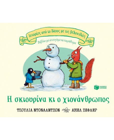 Στην καρδιά του δάσους με τις βελανιδιές, η σκιουρίνα φτιάχνει έναν χιονάνθρωπο.