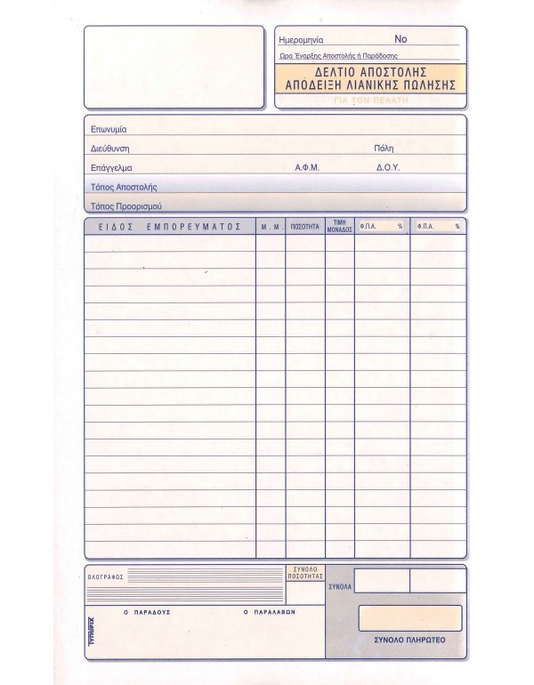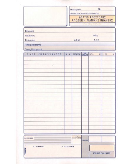 3081 ΔΕΛΤΙΟ ΑΠΟΣΤΟΛΗΣ ΑΠΟΔΕΙΞΗ ΛΙΑΝΙΚΗΣ 16x23 3x50φ.