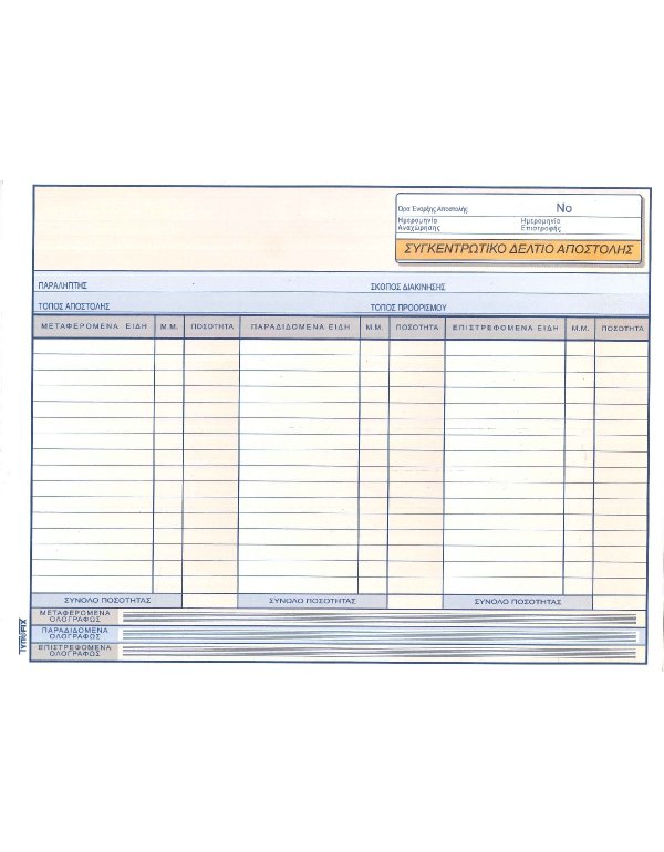 3113 ΔΕΛΤΙΟ ΑΠΟΣΤΟΛΗΣ - ΤΙΜΟΛΟΓΙΟ ΠΩΛΗΣΗΣ 16x23 3x50φ. 3 ΦΠΑ