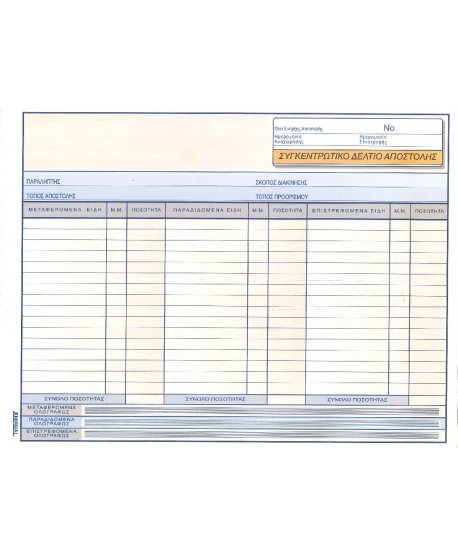 3102 ΣΥΓΚΕΝΤΡΩΤΙΚΟ ΔΕΛΤΙΟ ΑΠΟΣΤΟΛΗΣ 17x25 2x50φ.