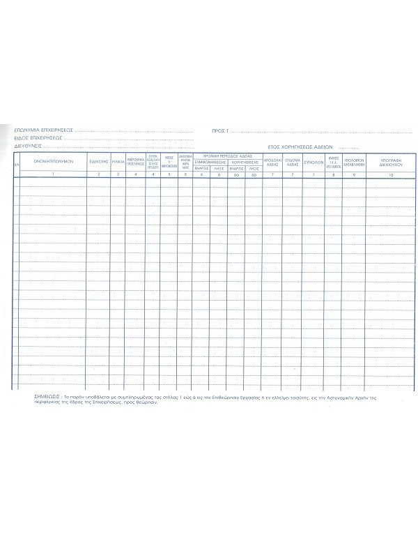 351 ΒΙΒΛΙΟ ΑΔΕΙΩΝ ΜΙΣΘΩΤΩΝ ΕΠΙΧΕΙΡΗΣΕΩΝ 2Χ10 ΦΥΛΛΑ