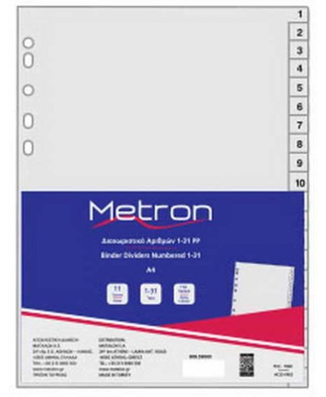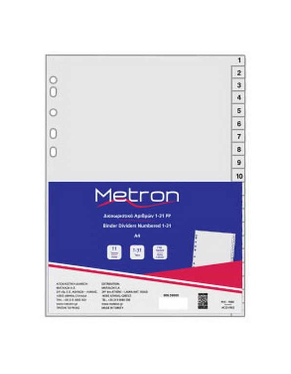 METRON ΔΙΑΧΩΡΙΣΤΙΚΑ ΑΡΙΘΜΟΙ 1-31 ΠΛΑΣΤΙΚΟ Α4