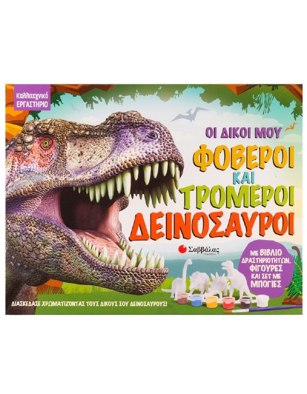 Χρωμάτισε και ζωντάνεψε τέσσερις φοβερούς δεινόσαυρους και ανακάλυψε τον προϊστορικό τους κό-σμο! Το πακέτο περιλαμβάνει: • βιβλίο για τους δεινόσαυρους με οδηγίες • 4 φιγούρες • 6 μπογιές • πινέλο • Σκηνικό από χαρτόνι.