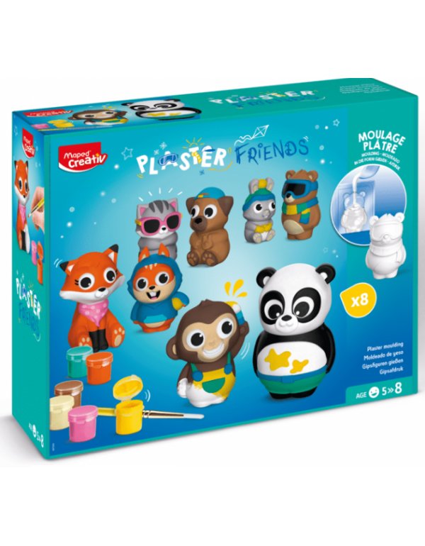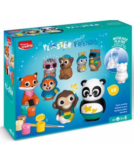 Με το παιχνίδι χύτευσης γύψου Plaster Friends Maxi Box, τα παιδιά μπορούν να φτιάξουν 8 χαριτωμένα ειδώλια ζώων. Μια ολοκληρωμένη δημιουργική δραστηριότητα γύψου και βαφής, πολύ εύκολο να γίνει.