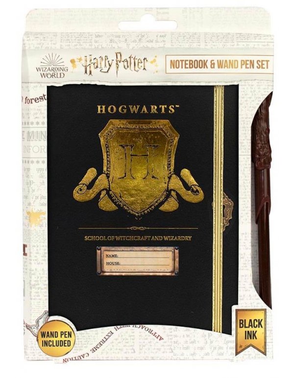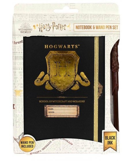 HARRY POTTER NOTEBOOK & WAND PEN SET- HOGWARTS SHIELD