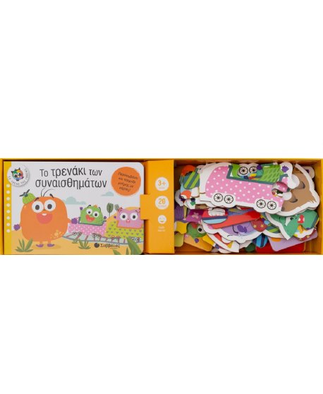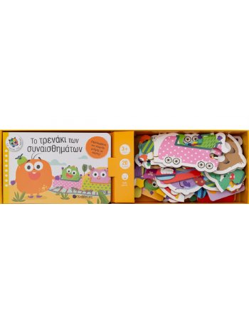 Το κουτί περιέχει: • ένα βιβλίο με τα συναισθήματα • ένα παζλ με 20 κομμάτια • ένα παιχνίδι μνήμης με 20 κάρτες • φωτογραφίες παιδιών που εκδηλώνουν διαφορετικά συναισθήματα.