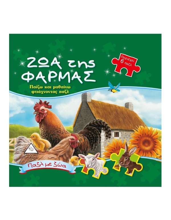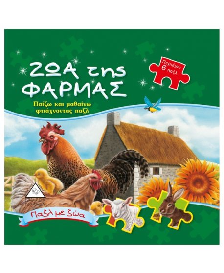 Τι πολλά ζώα που ζουν στη φάρμα! Γουρουνάκια, αγελάδες, άλογα, προβατάκια και κότες παίζουν χαρούμενα και ανέμελα όλη μέρα! Τα έξι παζλ θα συντροφεύσουν τους μικρούς αναγνώστες στη γνωριμία τους με τα ζώα της φάρμας. Τα παιδιά θα διασκεδάσουν δημιουργικά ενώ, παράλληλα, θα ενισχυθεί η αυτοεκτίμηση και θα ανταμειφθεί η προσπάθειά τους, βλέποντας τις υπέροχες εικόνες να ζωντανεύουν στο βιβλίο τους!