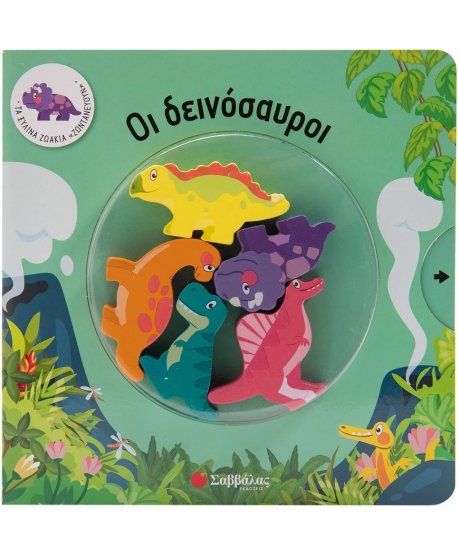 Με αυτό το βιβλίο τα παιδιά μαθαίνουν για τους δεινόσαυρους, διασκεδάζουν παίζοντας με τα ξύλινα ζωάκια και ταυτόχρονα αναπτύσσουν τη λεπτή κινητικότητα και την παρατηρητικότητά τους.