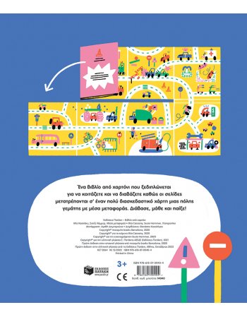 Ένα βιβλίο από χαρτόνι που ξεδιπλώνεται για να κοιτάζετε και να διαβάζετε καθώς οι σελίδες μετατρέπονται σ’ έναν πολύ διασκεδαστικό χάρτη μιας πόλης γεμάτης με μέσα μεταφοράς. Διάβασε, μάθε και παίξε!